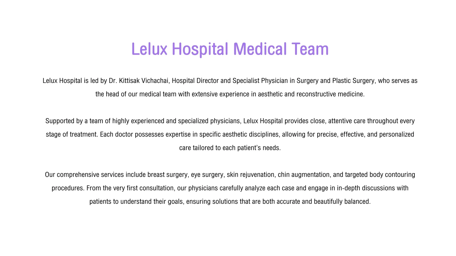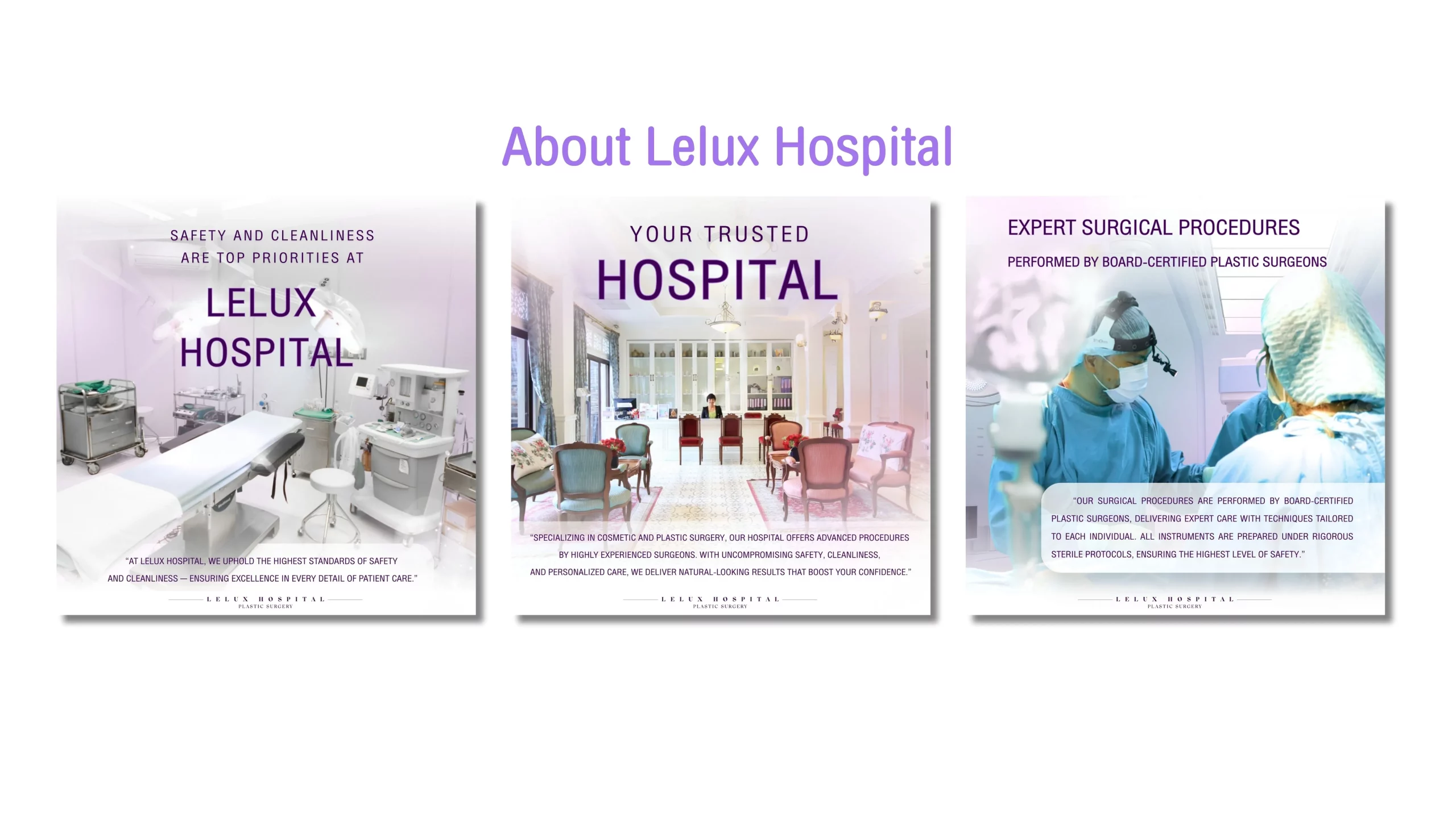 เรามีเครื่องมือที่ครบครันทันสมัยและได้มาตรฐานเหมาะสำหรับการทำศัลยกรรมตกแต่งโดยเฉพาะเพราะ เราเป็นโรงพยาบาลศัลยกรรมตกแต่งและความงามควรบวงจร
